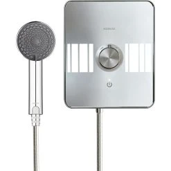 • Heats water for showering on demand, providing hot water for as long as required
