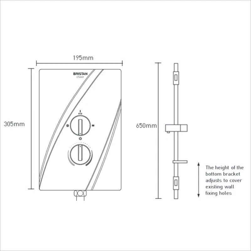 Multiple water/electrical cable entry points & adjustable riser rail fixing brackets, ideal for replacing an existing electric shower