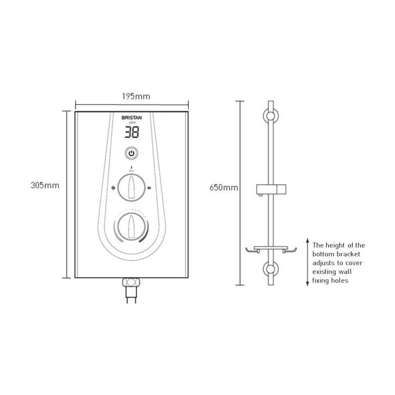 Supplied with adjustable riser kit and 3 mode rub-clean handset