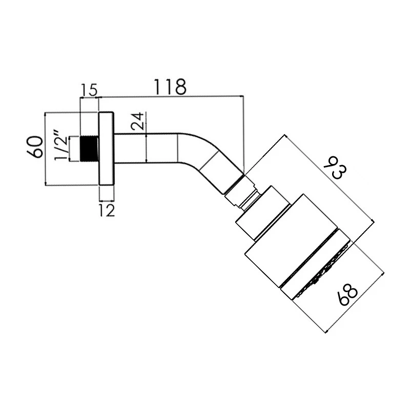 Quadrado 68mm Multi-Function Head with 118mm Wall Arm