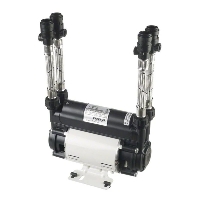 Domestic twin impeller inlet shower pump used to simultaneously boost hot and cold supplies.