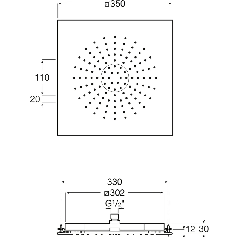 Raindream 350 x 350mm extra slim metallic shower head for ceiling installation