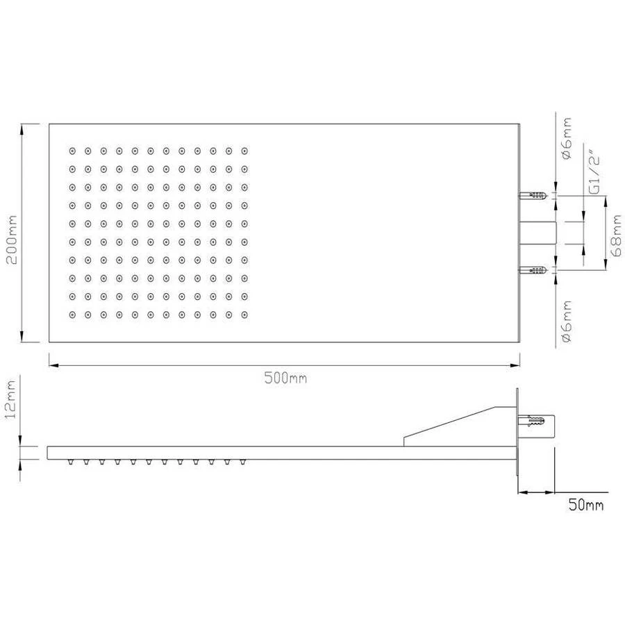 Rectangle Wall Fixed 500 x 220 x 31mm Shower Head