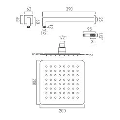 Aquablade Square Slimline Head and Arm 200mm (8″)