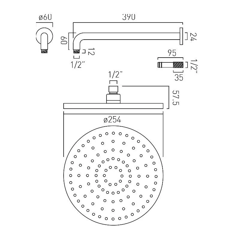 Shower Head with Arm Saturn Shower Head and Arm 254mm (10″) Diameter Chrome